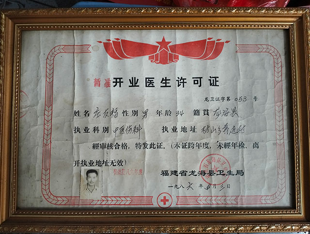 年轻时跟随伯父学习骨伤科正骨手法和中草药治疗方法,学习膏丹丸散制作技术,传承了祖先遗留下来的中草药秘方、单方、偏方、验方。1986年4月取得龙海县卫生局颁发开业医生许可证从事中医骨伤科执业生涯,几十年来治愈许多关节风寒湿热痹症疼痛,颈椎、胸椎、腰椎、膝关节疼,脚跟疼,骨质增生、椎间盘病突出、膨出、椎管侠窄,跌打新、旧损伤,特别是骨折术后半年至几年不能生长骨胶有奇效。深受受者及其家属的高度赞扬。