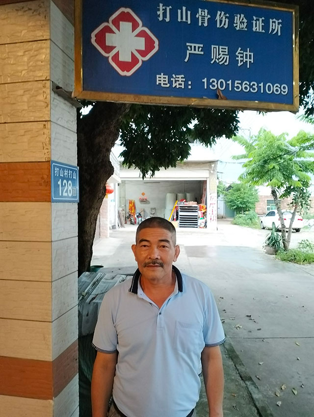 严赐钟医生自小传承武术武医,师拜家父严芳池、康亚六、康寿领,后拜厦门海沧林开国之子林彤檫等为师学习武医正骨(接骨与整骨)手法,历经四十余年考验,为一方百姓服务,由于成功率高、见效快、收费低廉,受到了患者一致好评。