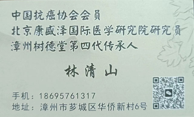 林清山,男,汉族,住漳州芗城振成巷46号华侨新村6号,电活:18695761317。