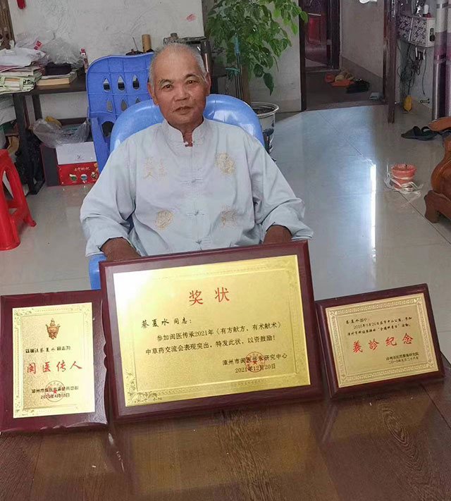 住福建省漳州市芗城区石亭镇仙景村蔡厝,任漳州市民间医术研究院特约研究员,中华医学会中医药学科主任委员(专家编号:350600195404224517),漳州市闽医传承研究中心研究员,漳州闽医传人联谊会理事。